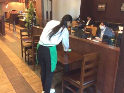 11月11日(火)、8年生では、3日間の職場体験の第1日目でした。スーパーマーケット【写真左】では、早速、商品の陳列方法を教えていただき、慎重に並べている姿がありました。コーヒー専門店【写真中】では、揃いの衣装を貸していただき、店員と間違えるくらい恰好が似合っていました。コーヒーの試飲をさせてもらったり、店内の整理整頓などのお手伝いをさせていただいていました。