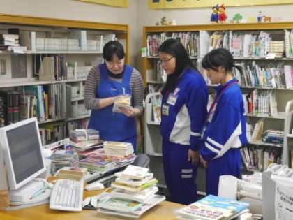 11月12日(水)、8年生は職場体験2日目でした。東淀川図書館【写真左・中】では、司書の方から本の修理の方法を教えていただき、蔵書の修理を行いました。11時からは、乳幼児とその保護者を対象とした絵本の読み聞かせ「赤ちゃんと楽しむ おたのしみ会 ぴよぴよ」があり、生徒も読み手として参加させていただきました。