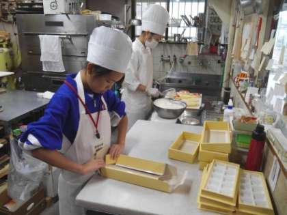 地域の洋菓子店【写真右】では、プチケーキを入れる箱を組み立ててをしたり、店内の清掃をしたり、店員の補助的な役割を担い、忙しそうにしていました。