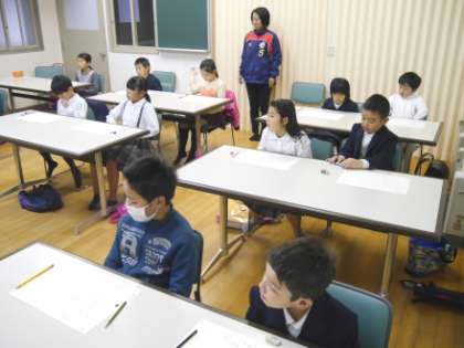 常用語でも、ことばの読み方や意味、使い方などが理解されていなければ、正しい漢字で書くことができません。全国の中学生では、4人に1人が「漢検」を受けているそうです。今後、将来の入試などでは、このような資格を評価するところも増えていくようです。早い段階から漢字を「知ってる」「読める」「書ける」ようになりましょう。 【写真は、各教室の開始直前の様子です。】