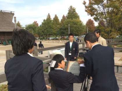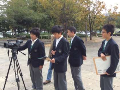 11月12日(水)、8年生の男子4名は、中央区大手前にあるNHK大阪放送局【写真左・中】で職場体験をさせていただきました。レポーターとカメラマンとに役割分担し、プロのカメラマンから撮影に関する技術指導を受け、番組作成の貴重な仕事体験をさせていただきました。
