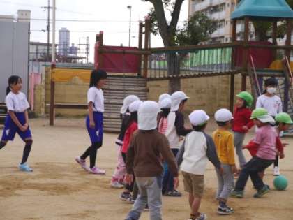 11月18日(火)午前、今日はステキな仕事体験の2日目です。学年の教員が引率し、別の班が各事業所に向かいました。保育所【写真左・中】では、どことなく緊張の面持ちでしたが、自己紹介をさせてもらった後は、幼児たちと手遊びやお遊戯をさせていただきました。最後は園庭でドッヂボールをし、しだいに幼児の皆さんが慕ってくれ、児童の表情も和んでいきました。