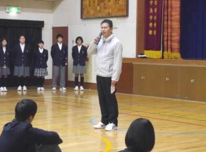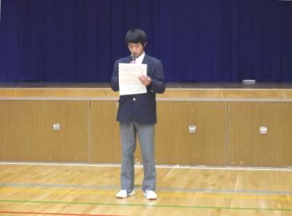 12月1日(月)始業前、今日の生徒集会は教頭先生からの講話でした。人権週間や障がい者週間にも関連して、1年をふり返り「改めて考えてみる」ことでした。考えが深まり成長すること、向学心を持つことにだけでなく、これからも、人に対する感謝の気持ちをもって、行動することの大切さを話されました。