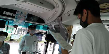 バスの乗務員さんに生徒代表からあいさつをしました。