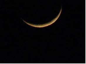 新月とは、太陽と地球の間に月があるとき地球から見たら、月の光が失われ真っ暗に見える状態をいいます。(月齢0)