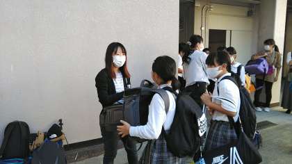 登校してきた児童は健康チェックを行ってます