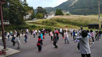 朝の集いです ラジオ体操しています