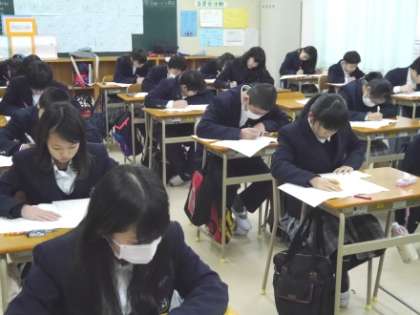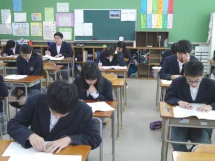 1月14日(水)、7年生・8年生では、今年度から大阪府教育委員会が、府下一斉で実施するチャレンジテストを行いました。生徒自らの学習到達状況を正しく理解し、自らの学力の目標や意欲の向上を図る目的はもちろんのこと、今後の大阪府公立高等学校入学者選抜における評定の公平性を担保する方策について、検証する調査目的も含まれています。