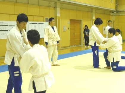 2限は、8年生の男子体育で校内研究授業が行われました。種目は「柔道」でした。8年生は今年度まだ2回目の柔道授業とあって、準備運動後は、すでに習得している受け身の練習に多くの時間がかけられていました。組み手を決めて、危険防止の約束ごとを確認しながら、教えあうほのぼの感もありました。