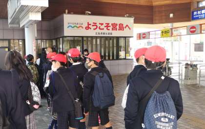宮島口駅に着きました。 これからフェリーに乗って宮島に渡ります。