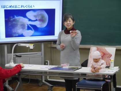 2月4日(水)3限、2年生では生活科における「いのちの学習」として、助産師会の方を講師にお招きして、大切にしたいこころとからだ 〜赤ちゃんのこと、自分のいのちのこと〜 についての学習をしました。
