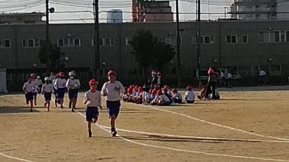 今日は3・4・5年生が運動場でかけ足大会をしました。