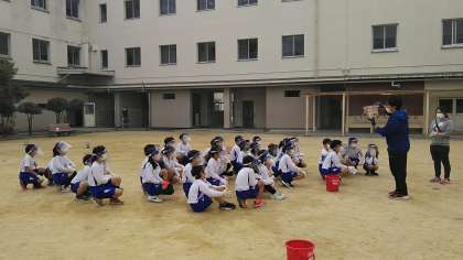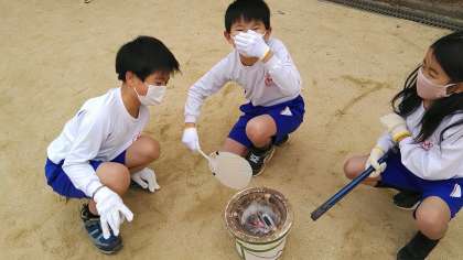 班ごとに分かれ歓声の中、早く着火した班やあと一歩で火が起きず、やり直す班など、みんな一生懸命に取り組んでいました。