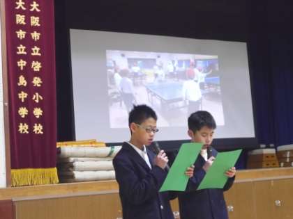 第1日目となる今日は、最初がバドミントンクラブで、基礎練習や各学期に行われる「バドミントンカップ戦」など、活動の様子を解説してくれました。続いて卓球クラブの代表児童からは、練習や試合の様子の説明がありました。とりわけ、スマッシュではリプレー編集もされていて、驚きの歓声があがってました。また、児童会からは、2月20日から27日の「なかまウィーク」の紹介もありました。
