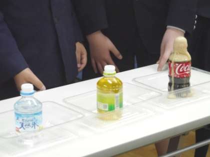 2月20日(金)2限、6年生では学校薬剤師の先生による「薬の正しい使い方教室」が行われました。病気やけがの治療を助けてくれる薬には、主作用と副作用があること、医師や薬剤師の指示に従って正しく服用することを学びました。錠剤の薬を水・お茶・コーラで服用した場合の実験【写真中・コーラに薬を入れるとあふれ出ました】などをまじえて、わかりやすくお話していただきました。