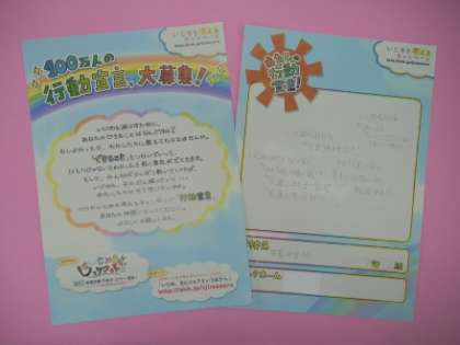 『行動宣言』とは、NHKのいじめを考えるキャンペーン【写真中】として取組まれている活動で、「見ているだけはというのはもうやめよう」という考えをもとに、学校やクラス・個人で「自分でやろうと決めたこと」を発表するというものです。