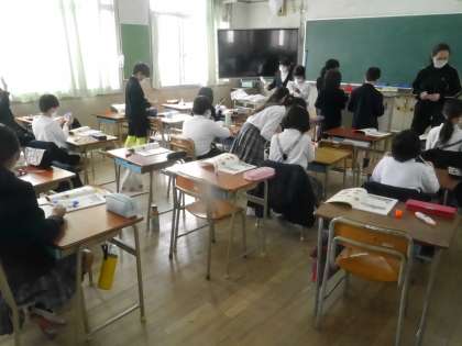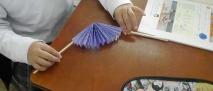 角の大きさを調べる授業で、おうぎ形を作製しています。