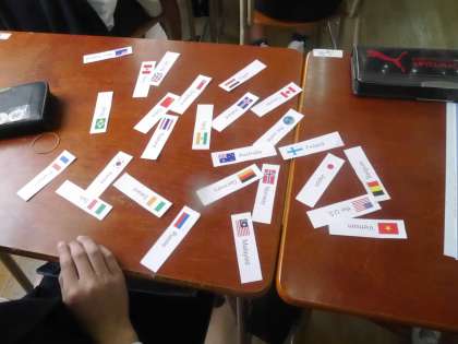 英語で書かれた世界の国々のカードを取りあうゲームをしています。