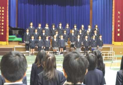 今日は、明日の予行、明後日、3月4日(水)の立志式本番を控え、2学年合同で最後の通し練習を行いました。式の進行を確認し、4年生が喜びのことばを述べる場面では、一人一人の気持ちが、十分に伝わる力強さを感じました。 4年生とともにその場を演じる3年生の表情も緊張感に満ちていました。