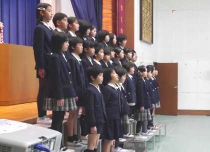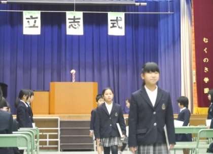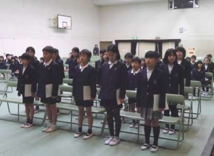 歌声響く校歌斉唱、名前を呼ばれての大きな声での返事、舞台の上での堂々とした振る舞い、そして何よりも将来の夢や希望を語る「これからの決意」は、力強さを感じました。『むくのき学園』は、9年間で4−3−2制の区切りを意識した6−3制の特認校(1・7年生で全市募集)です。学園内では、4年生修了時を前期区分から中期区分への進級期、あるいは2分の1成人式の年齢であることも意識させ、大人への階段を駆けあがろうとする児童にエールを送っています。
