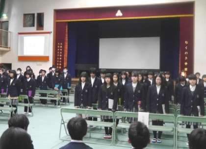 3月4日(水)午前11時から、7年生は生徒自らが選択したテーマに沿って、班で学び合い、議論を尽くし合ってきた━これからの社会を見つめて━どう歩み、さらに、人への理解、人とのつながりはどう深めるのかという視点で、新たな学びの志を確かなものとする発表会である志学式を実施しました。