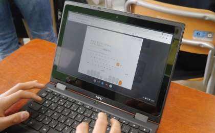 「タイピング」の練習をしています。前回より早くうつことができましたか?