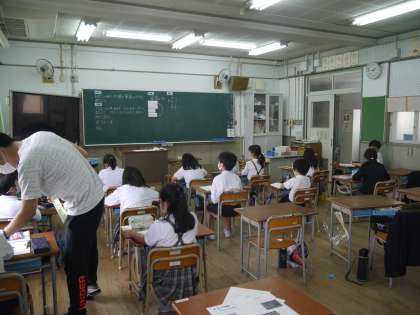 学年を3つのグループに分けてきめの細かい指導をしています。学習の中身をしっかり身に付けることができたかな。