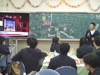 3月10日(火)午後、第64回卒業証書授与式を明後日にひかえ、9年生では2クラス合同での「茶話会」を行いました。
