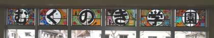 3月11日(水)午後、64期生が卒業制作として完成させた、『むくのき学園』を表示する「ステンドカラー」が、5号館ホールの窓ガラスに取付けられました。