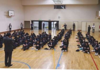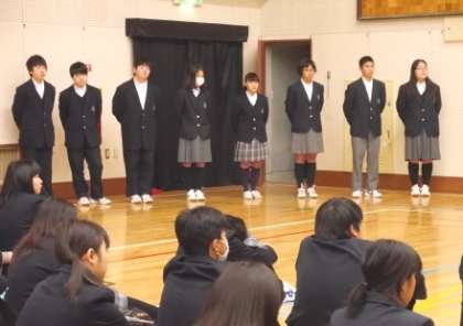 3月9日(月)朝、今日は7年生から9年生が集う最後の生徒集会でした。