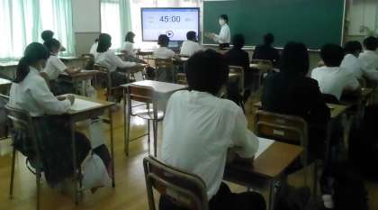本日2限から6限で、社会、国語、数学、英語、理科の5教科実力テストを実施しました。