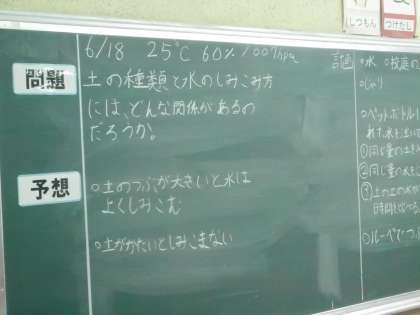 4年生が理科の学習で「土の種類と水のしみこみ方」について観察しています。