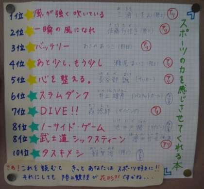 また、10位までの本も掲載していますので、気になる本があれば図書館まで借りにきてください。