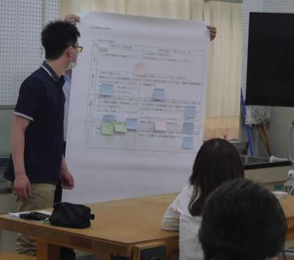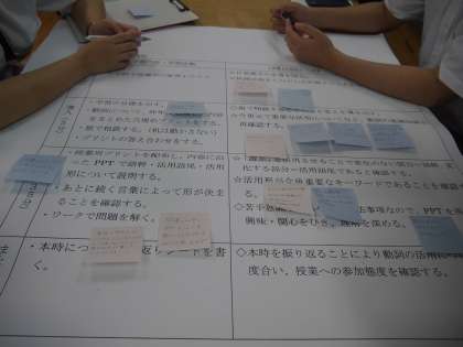 よかった点、改善すべき点、疑問点などを出し合い、授業力向上をめざして熱心に話し合いました。