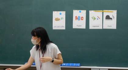 小学校の先生方対象に、大阪市教育委員会から講師の方が来られ、外国語活動の研修を行いました。
