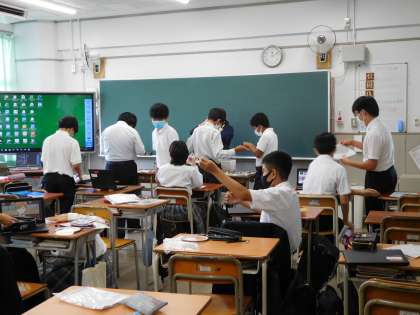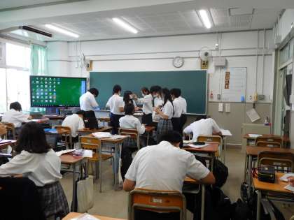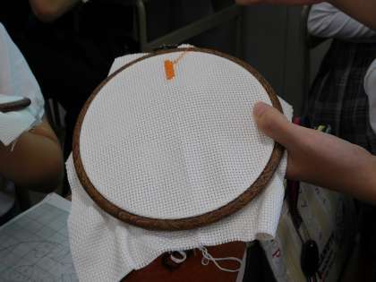 8年生が技術・家庭の時間にクロスステッチキットを使って「フープワーク」に取り組んでいます。みんな先生の話をしっかりと聞いて真剣なまなざしで、集中して取り組んでいます。どんな作品が出来上がるのか楽しみです。