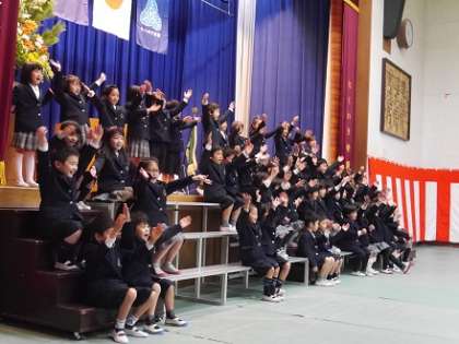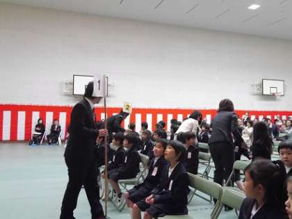 入学式終了後、2年生による歓迎の演技が披露されました。学園生活の四季折々の取組をユーモアたっぷりの演技で紹介。1年生は大喜び。笑い声とともに「これ、本当におもしろいな」とのつぶやきも…。ご来賓・地域の皆さま、保護者の皆さまもあたたかな空気に包まれました。真剣で完成度の高い演技から、児童の1年間の成長のすばらしさが伝わりました。1年生、がんばりましょう !