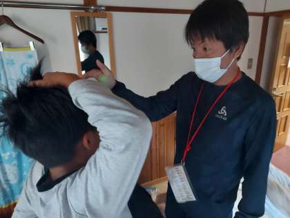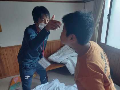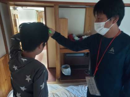コロナ感染予防策として、林間学習中も、定期的に検温を実施しています。