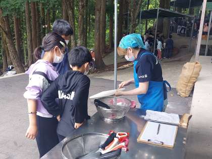 飯ごうすいさんで使った、食器やまな板、鍋や飯ごうなどを、汚れ1つ残さず、洗い落とし、宿舎の方から合格をもらわないと、終わりません。