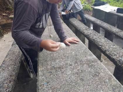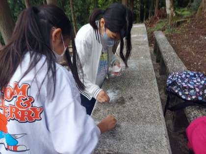 自分のティッシュを濡らして集めているお友だちを発見!!