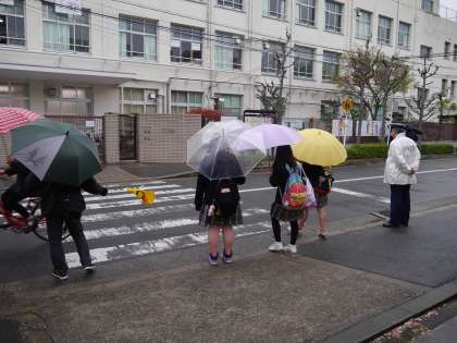 長雨で気分は晴れませんが、児童生徒は元気に登校してくれています。通学区域外の児童生徒は、崇禅寺駅・新大阪駅・柴島駅などに集合して集団登校しています。集団登校に慣れるまでは各集合場所に担当の教員が付き添います。ゴールデンウィーク明けまでの予定です。