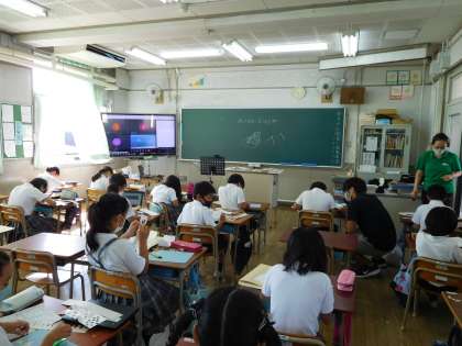 4年生が図画工作で「紙の変身・いってみたいこんな町」に取り組んでいます。画用紙を切ったり折ったり巻いたりしていろいろな形を作ります。先生の説明をしっかりと聞いて取り組んでいます。どんな町ができるのか楽しみです。