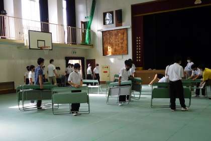 明日、新入生保護者対象の学校説明会を体育館で実施します。