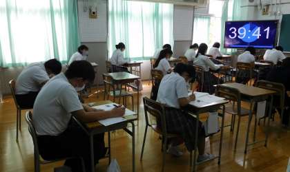 本日、臨時休業で延期していました、府内公立中学校3年生を対象とした『チャレンジテスト(国語・社会・数学・理科・英語)』に取り組みました。
