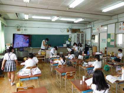 2年生が生活科の学習で「あそび方をくふうしよう」で自分たちでおもちゃをつくっています。