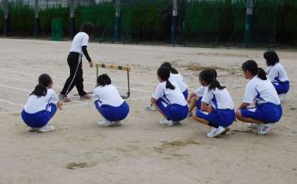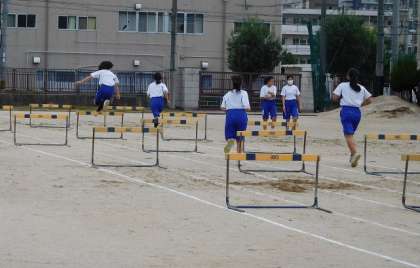 女子は、「ハードル」の授業です。