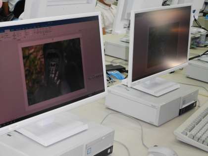 説明を聞いた後、自分たちでインターネットで動物の画像を検索して、印刷します。