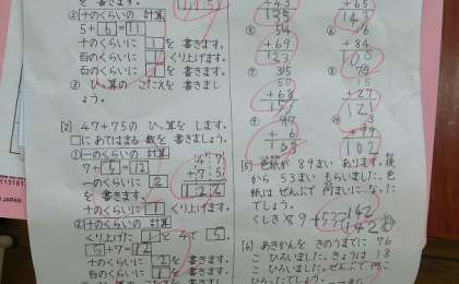 「たし算」「ひき算」のテストをしました。