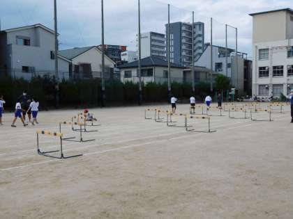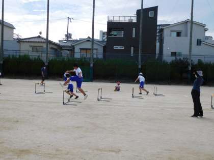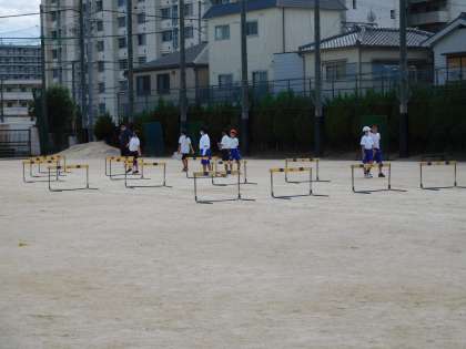 ハードルの間隔は一番短いコースが5mで50cmずつ広くなっています。自分の歩幅に合わせて走りやすいコースを選びます。