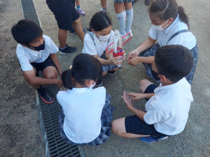 「ペットボトルに入れる水の量はどれくらいがいいかなあ。」